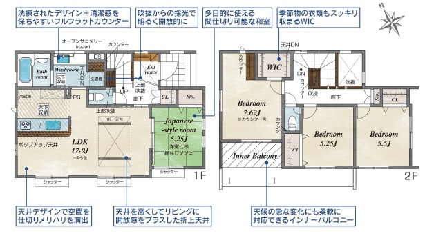 浄水器内蔵キッチン水栓・吹抜・設計住宅性能評価取得・長期優良住宅・南面道路・折り上げ天井