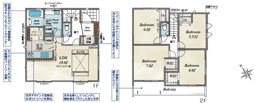 浄水器内蔵キッチン水栓・全室2面採光・設計住宅性能評価取得・長期優良住宅・折り上げ天井